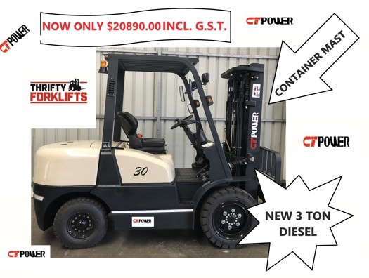 BRAND NEW 3 TON DIESEL CONTAINER MAST FORKLIFT NOW ONLY $20,890 INCLUDING GST!!
